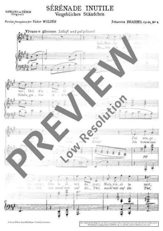 Digital Sheet Music for Sérénade inutile by Johannes Brahms scored for Soprano (tenor); id:485303