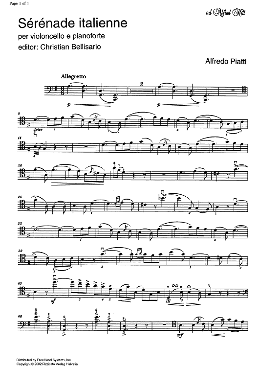 Digital Sheet Music for Sérénade Italienne Op.17 - Cello by Alfredo Piatti scored for Cello/Piano; id:338229