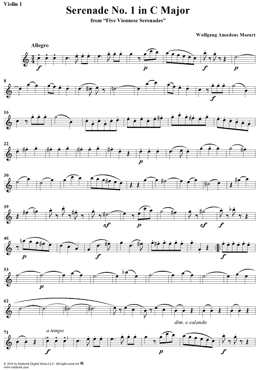 "Serenade No. 1 in C Major from "Five Viennese Serenades" - Violin 1" Sheet Music by Wolfgang Amadeus Mozart