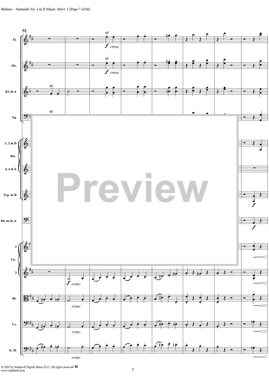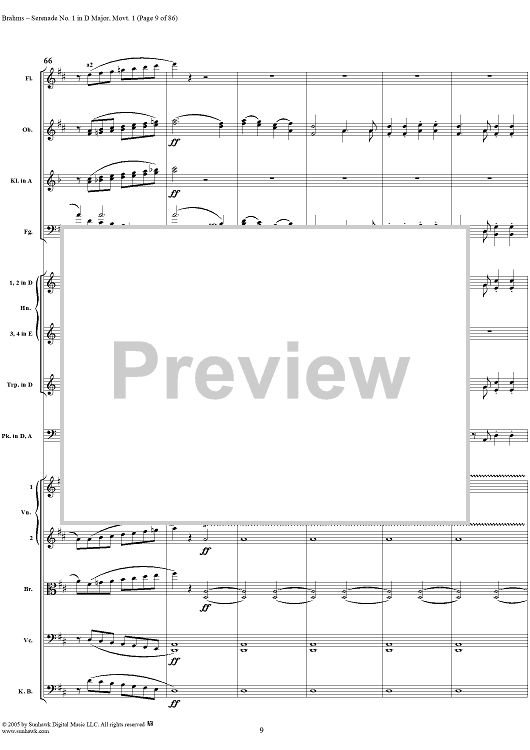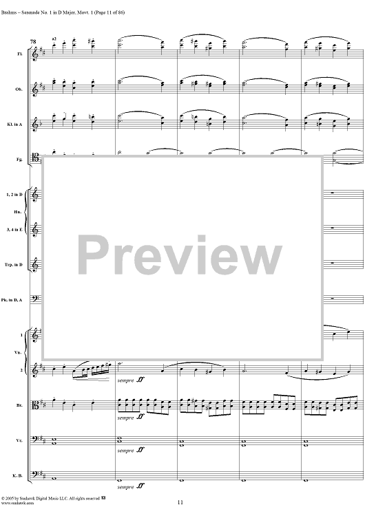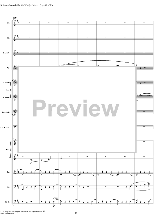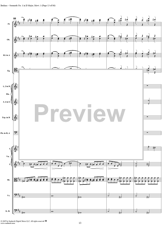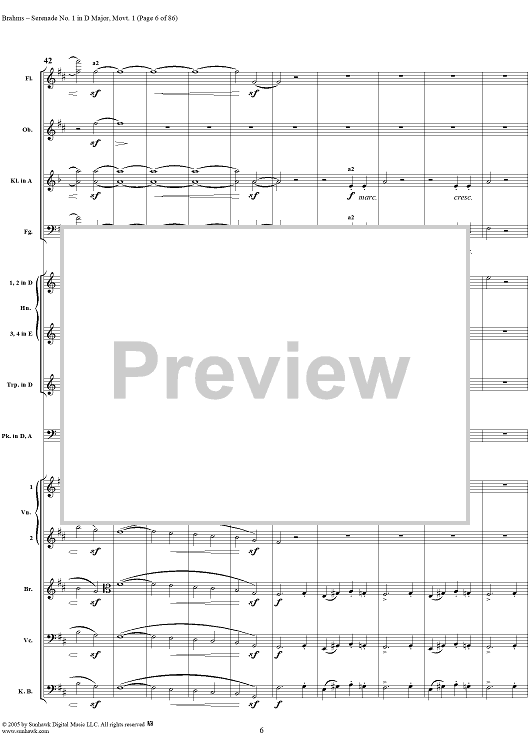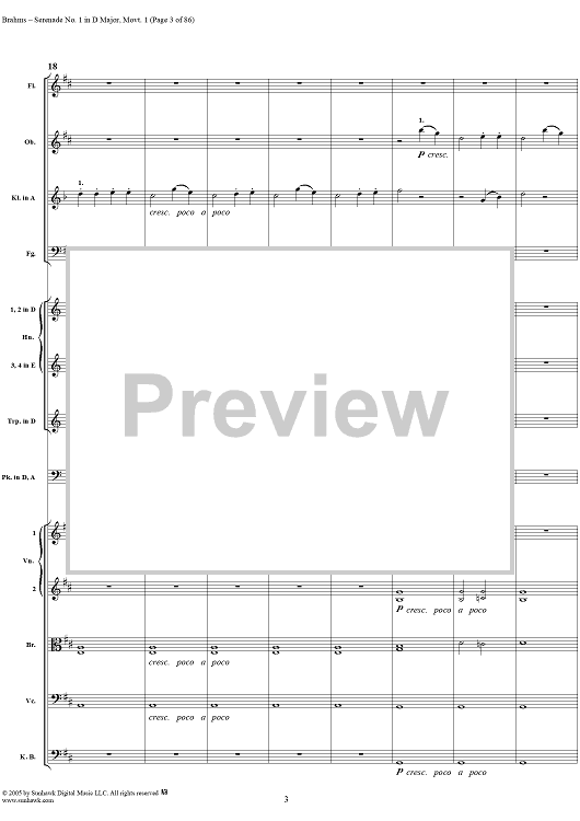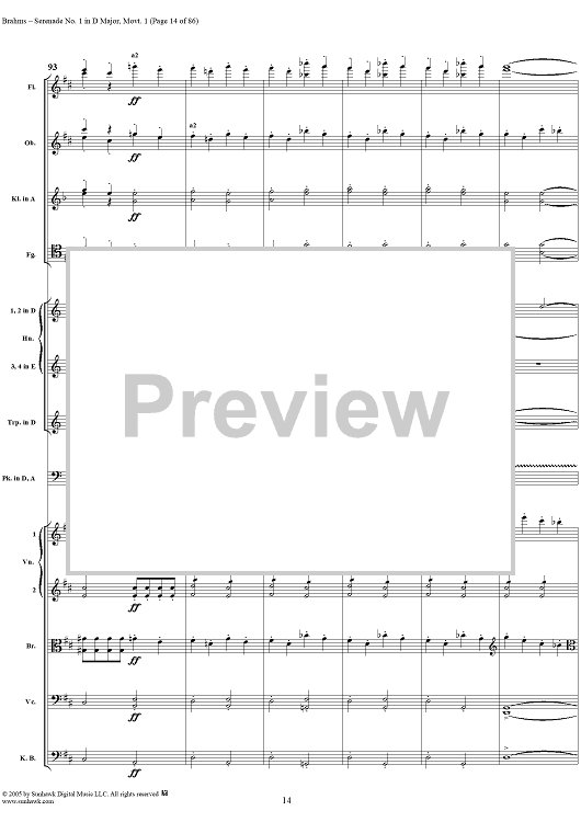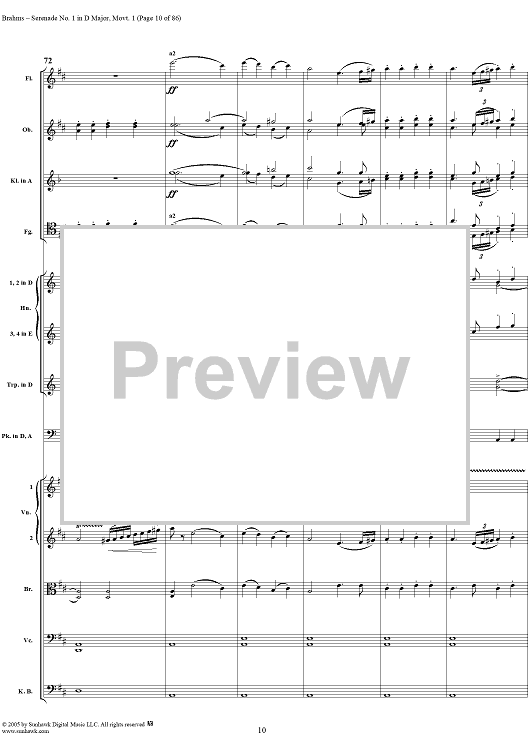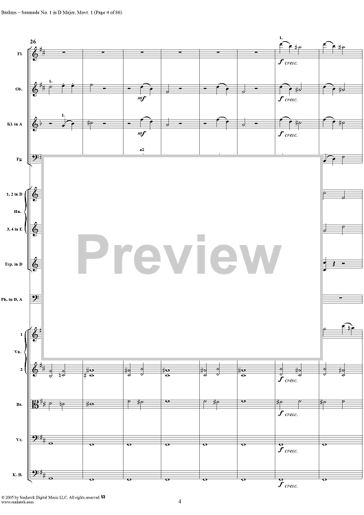 Digital Sheet Music for Serenade No. 1 in D Major, Movement 1 - Full Score by Johannes Brahms scored for Orchestra; id:315141