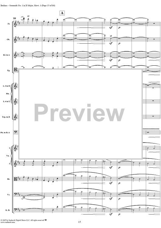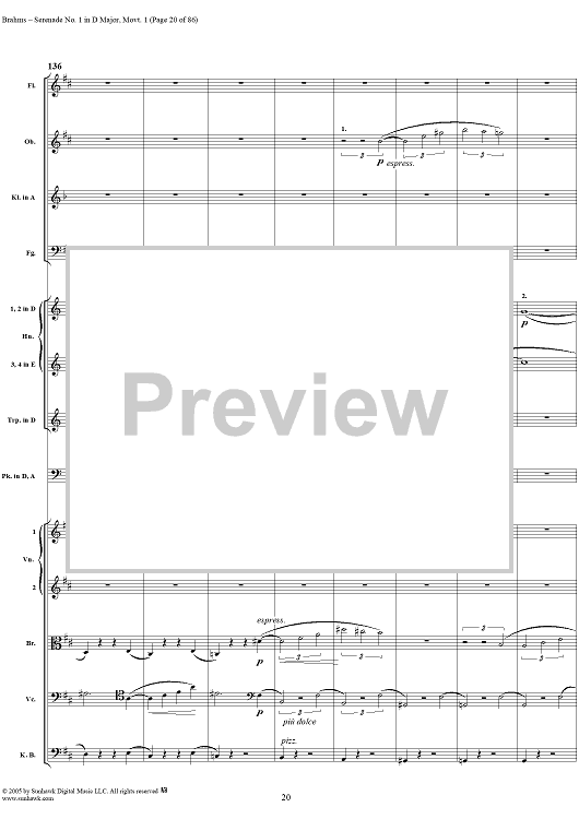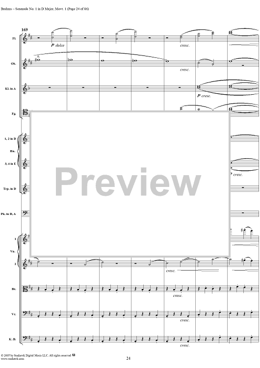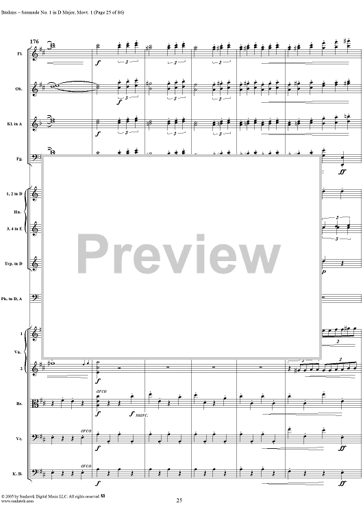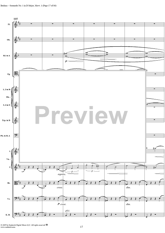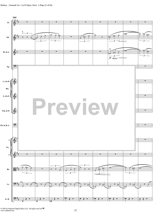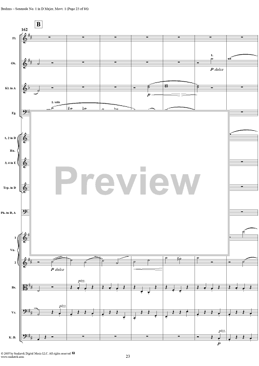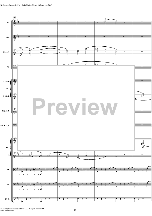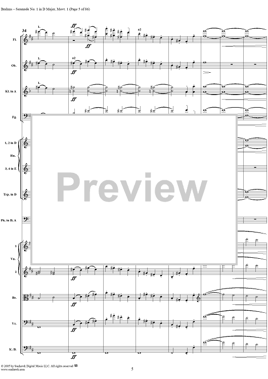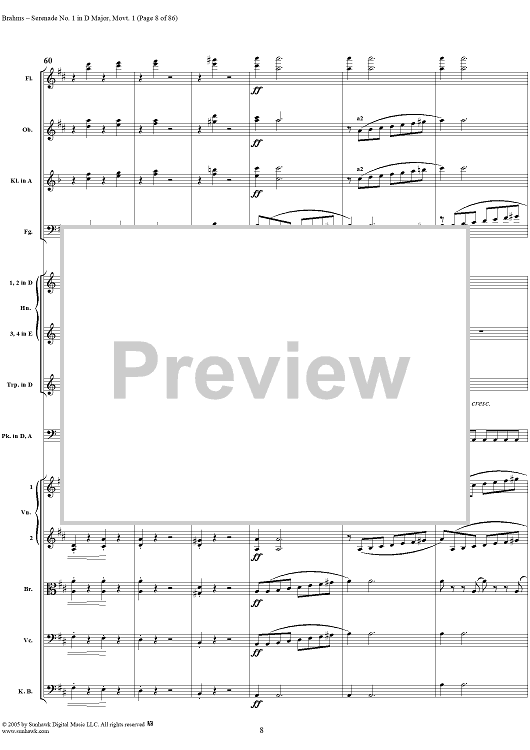 Digital Sheet Music for Serenade No. 1 in D Major, Movement 1 - Full Score by Johannes Brahms scored for Orchestra; id:315141