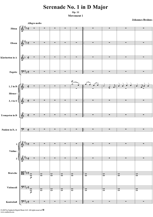 "Serenade No. 1 in D Major, Movement 1 - Full Score" Sheet Music by Johannes Brahms