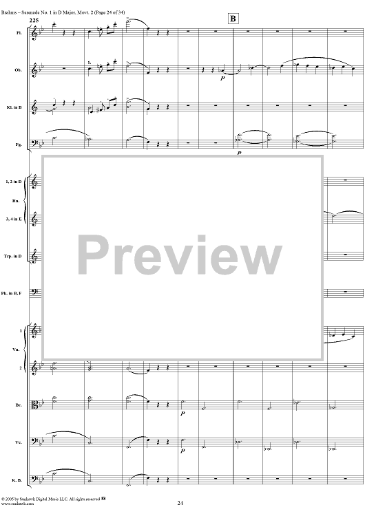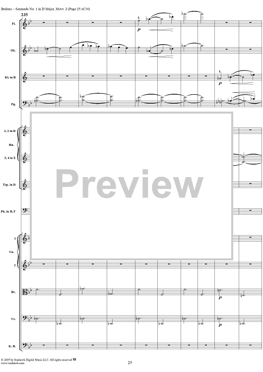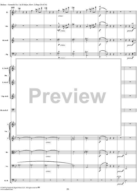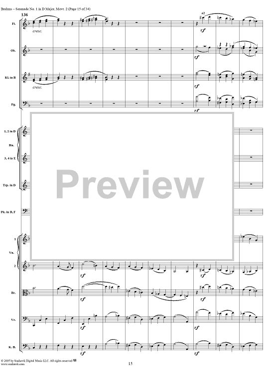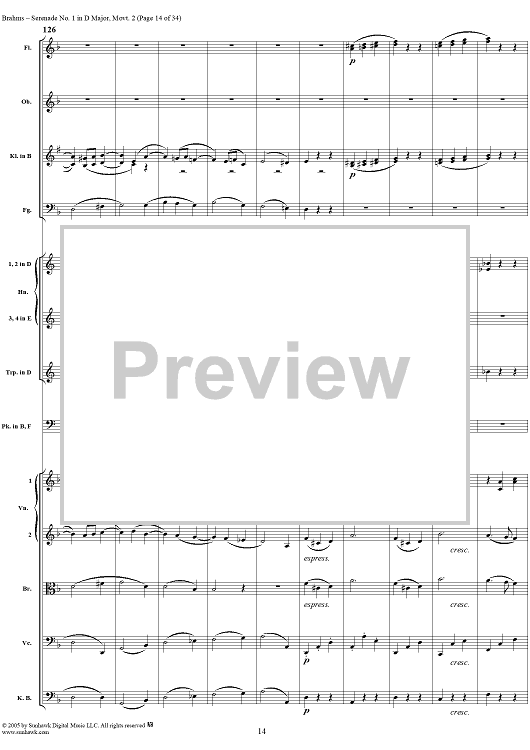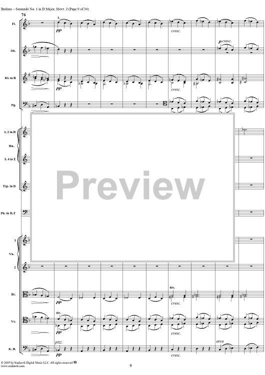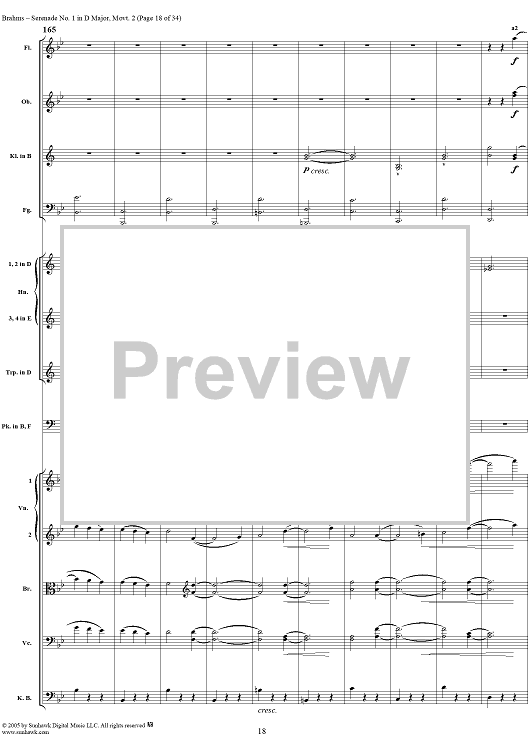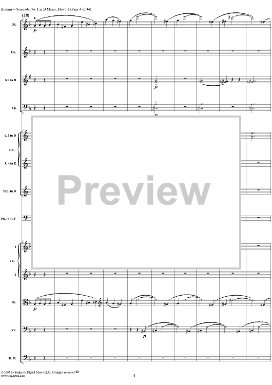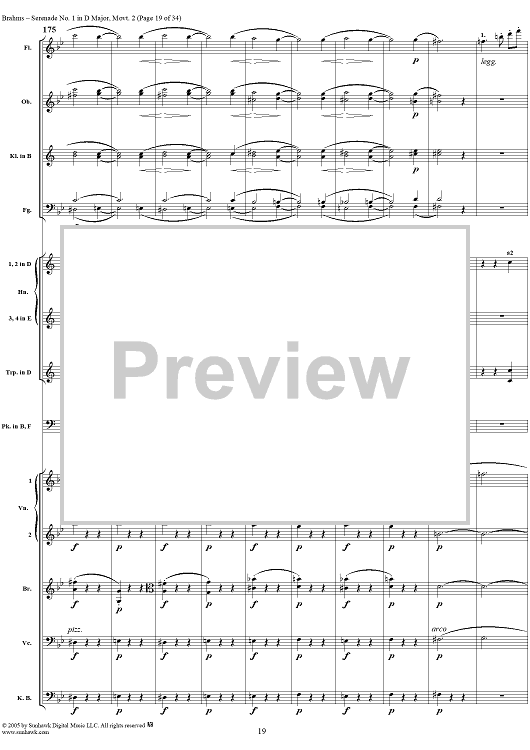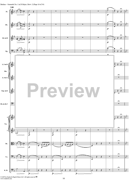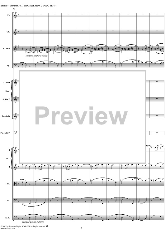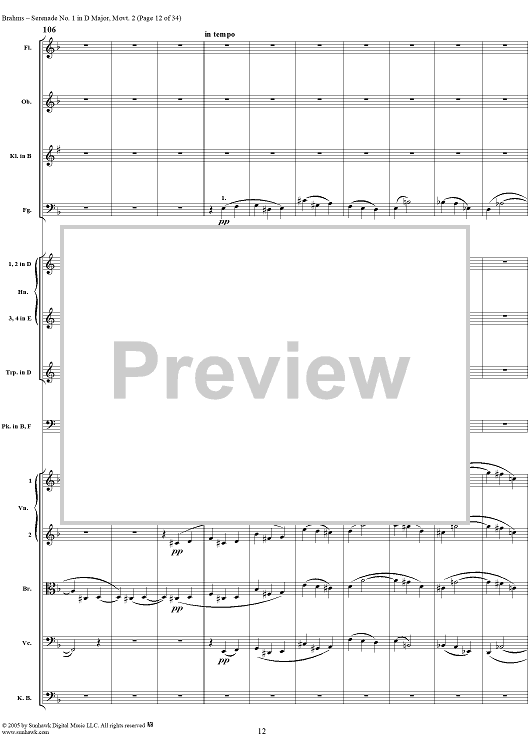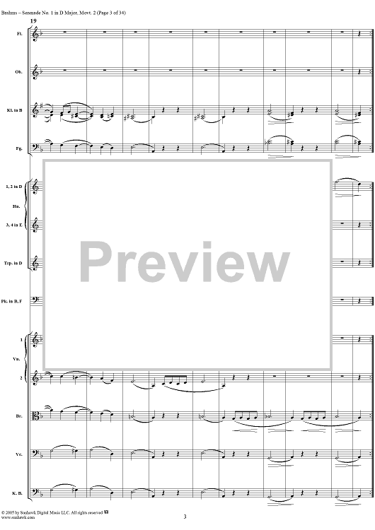 Digital Sheet Music for Serenade No. 1 in D Major, Movement 2 - Full Score by Johannes Brahms scored for Orchestra; id:315142