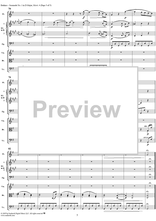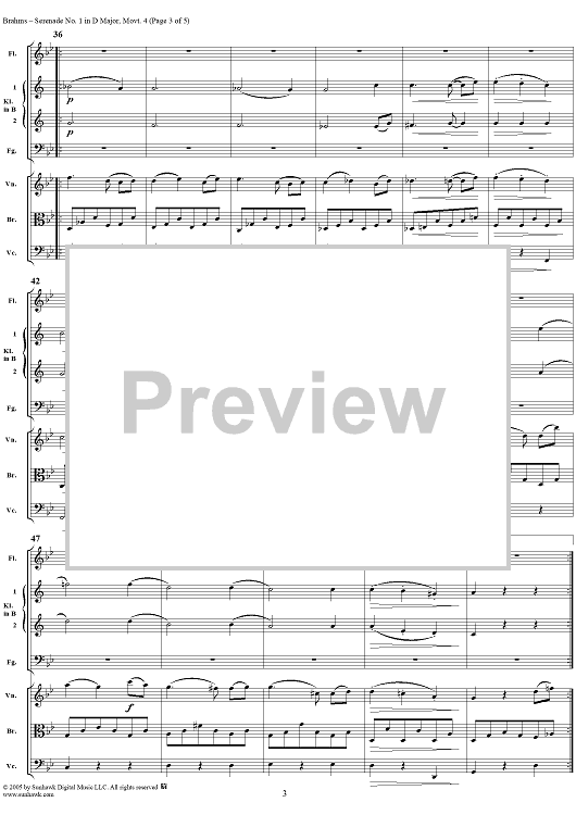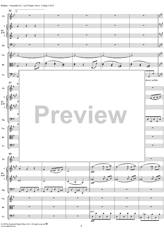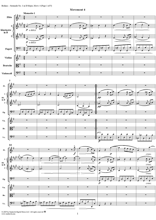 "Serenade No. 1 in D Major, Movement 4 - Full Score" Sheet Music by Johannes Brahms