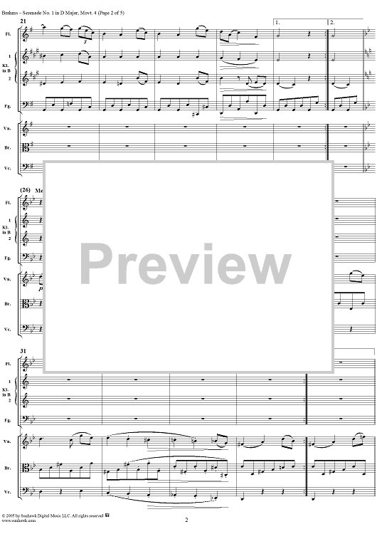 Digital Sheet Music for Serenade No. 1 in D Major, Movement 4 - Full Score by Johannes Brahms scored for Orchestra; id:315147