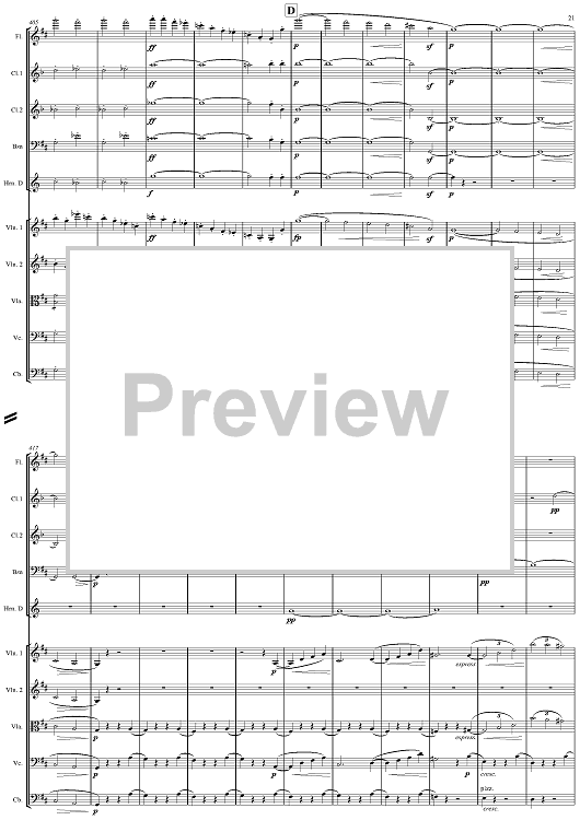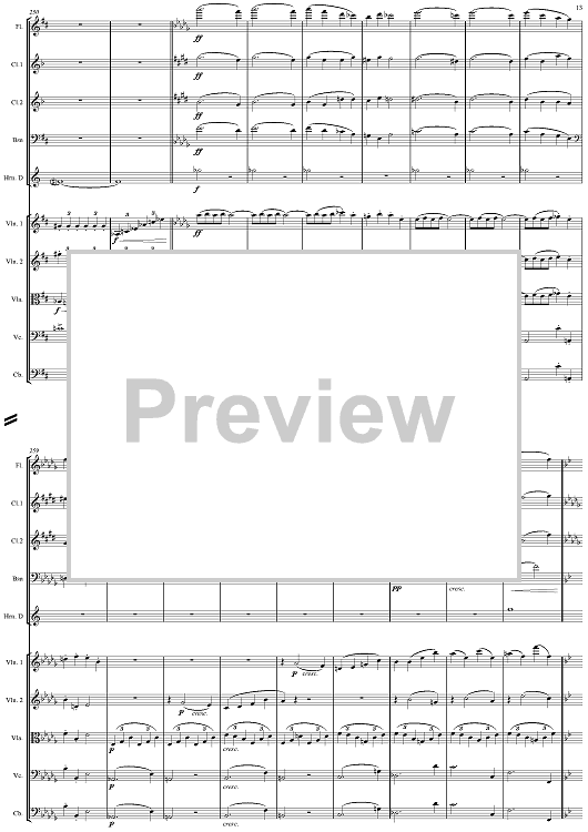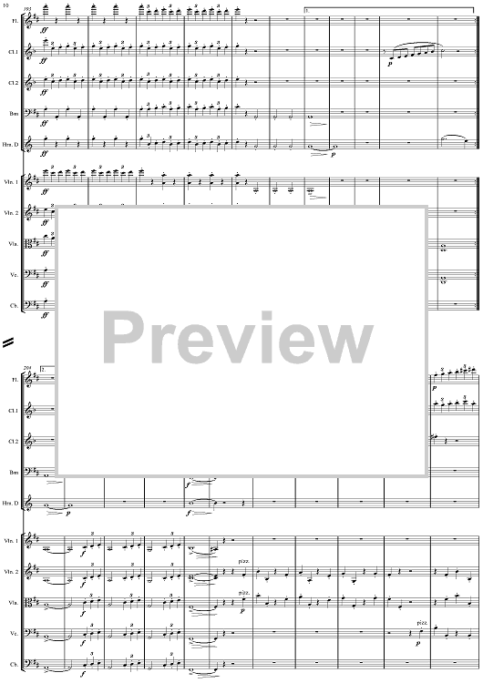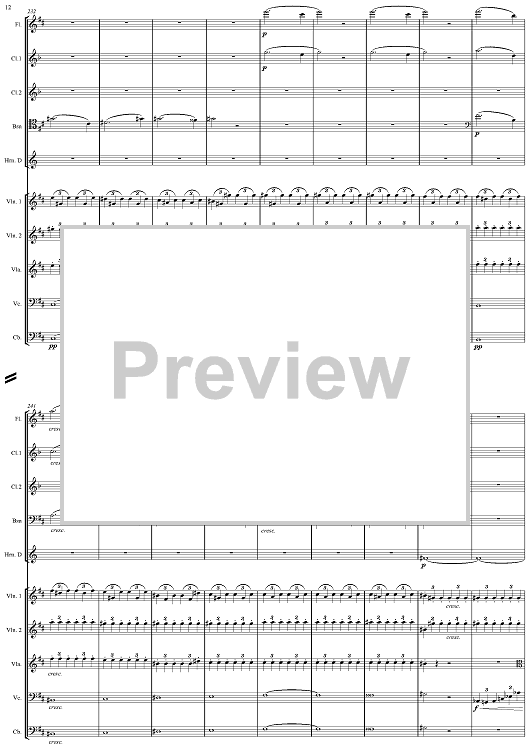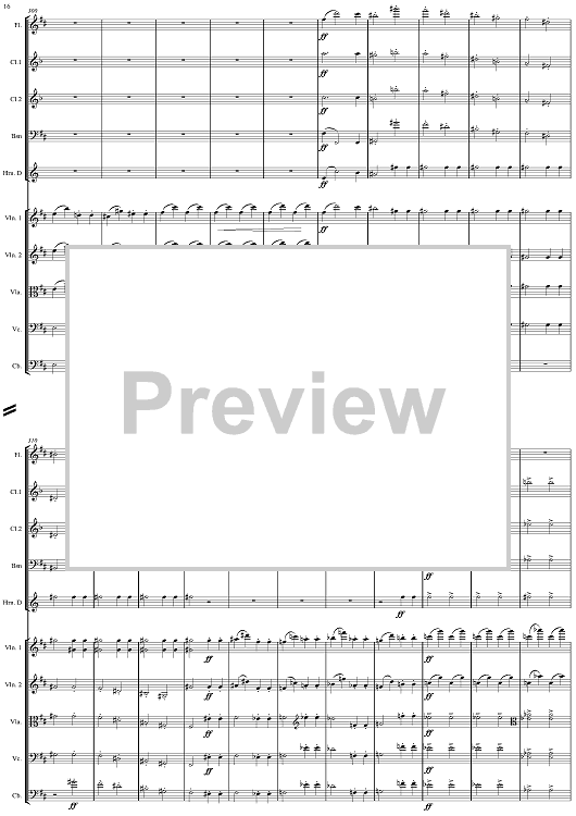 "Serenade No. 1 in D Major Op.11" was written by Johannes Brahms in Detmold, Germany, in 1857 and published in Leipzig in 1860. Iit was originally composed for a small ensemble of 9 instruments. Johannes Brahms directed the first performance in Hamburg in 1859. The serenade is divided in 6 movements, and takes about 45 minutes. This reduction for 10 instruments is based on the score for orchestra, and is composed of a string quintet and a wind quintet. The orchestration and the use of the wind instruments with the two clarinets respect the first version for nine instruments, a quintet without the Oboe. The arranger, Franco Pisciotta's intention was to create a balance between strings and wind instruments. All dynamics, articulations, etc... were taken from the original manuscript and not from any other music editions.