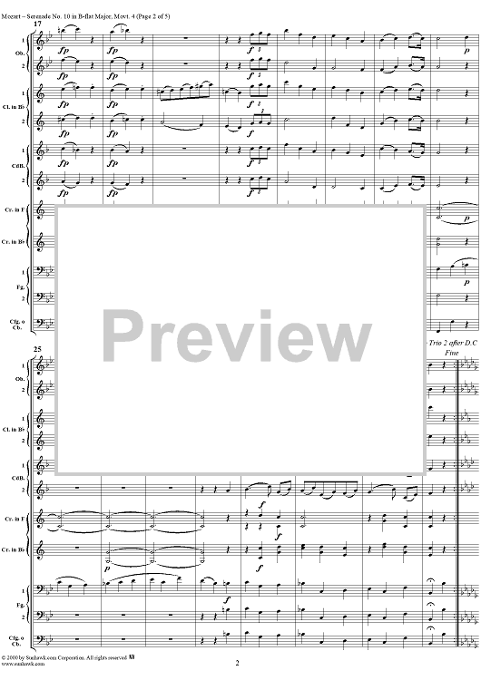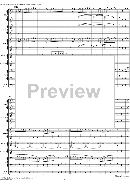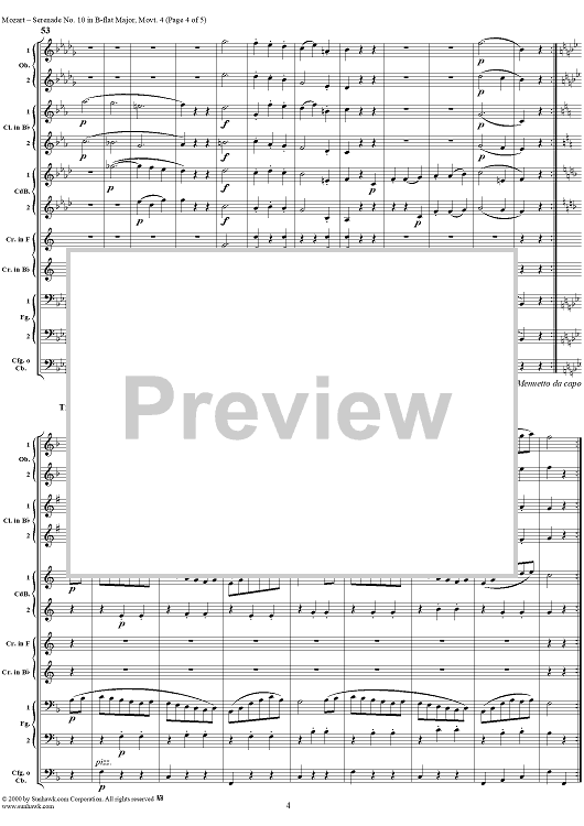 Digital Sheet Music for Serenade no. 10 in B-Flat Major, Movement 4, K361(K370a) ("Gran Partita") - Full Score by Wolfgang Amadeus Mozart scored for Wind Ensemble; id:236820