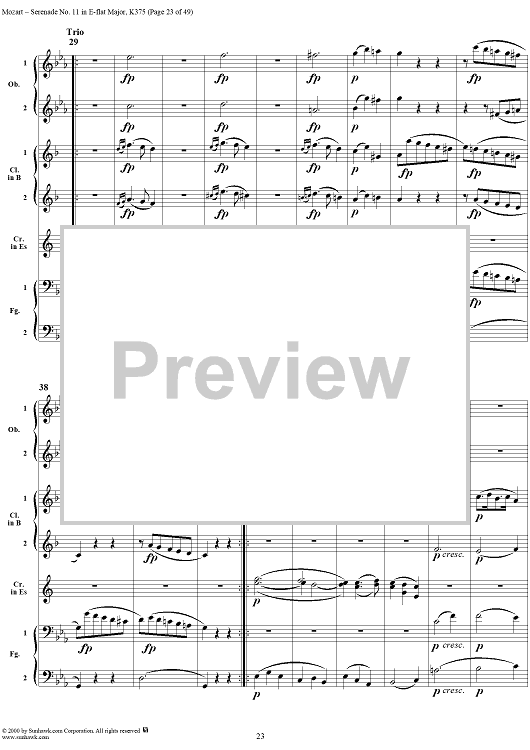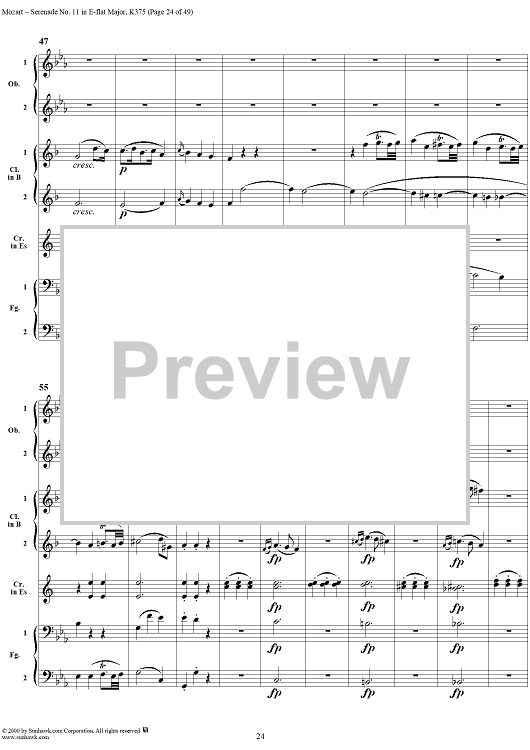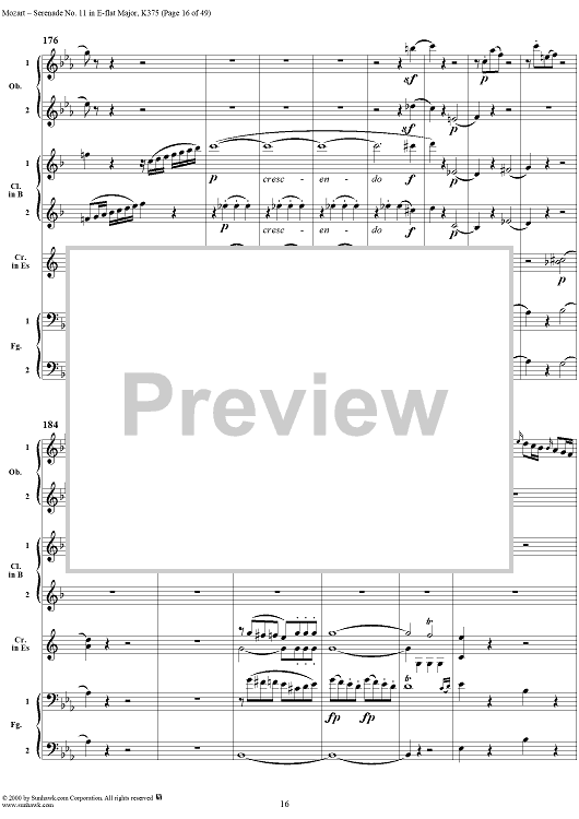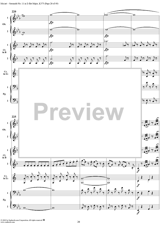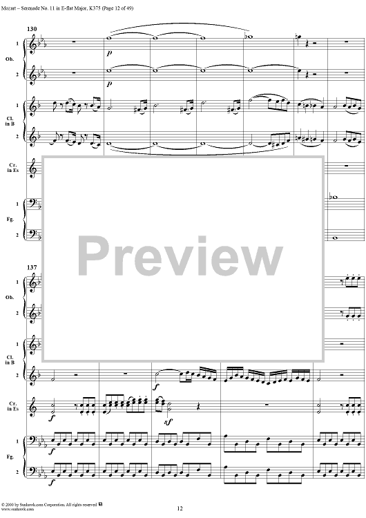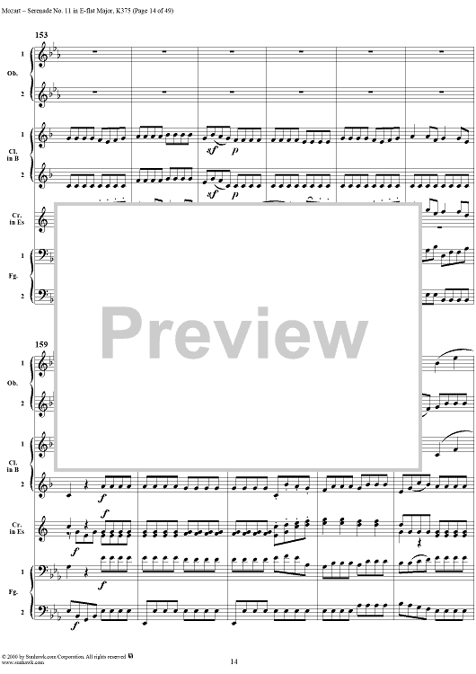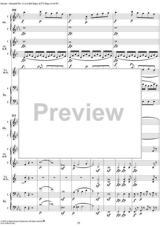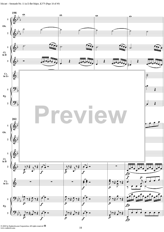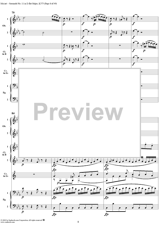 Digital Sheet Music for Serenade no. 11 in E-flat major, K375 - Full Score by Wolfgang Amadeus Mozart scored for Woodwind Ensemble; id:234589