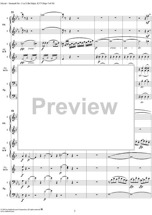 "Serenade no. 11 in E-flat major, K375 - Full Score" Sheet Music by Wolfgang Amadeus Mozart