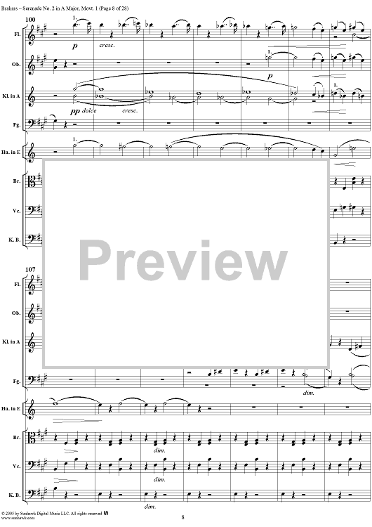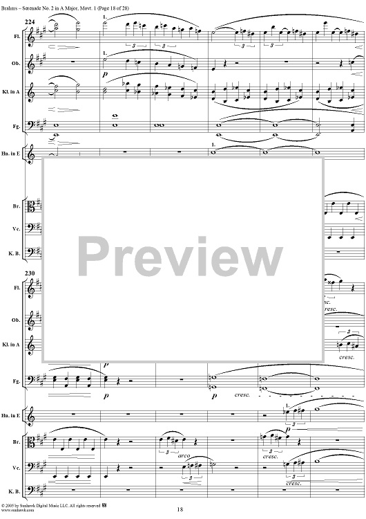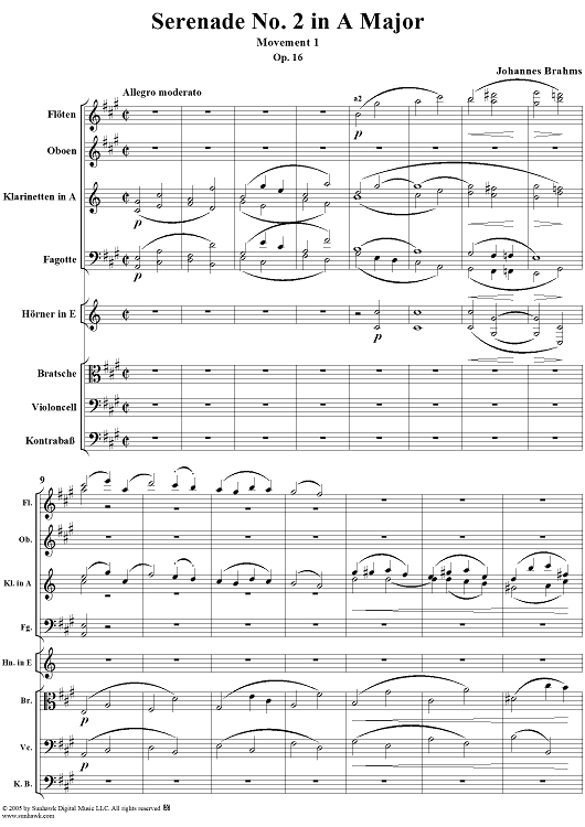 "Serenade No.2 in A Major, Op.16, Movement 1 - Full Score" Sheet Music by Johannes Brahms