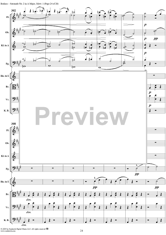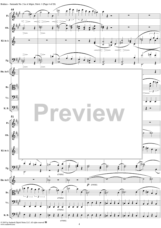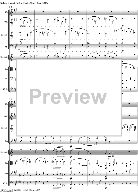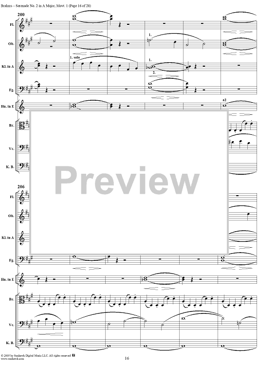 Digital Sheet Music for Serenade No.2 in A Major, Op.16, Movement 1 - Full Score by Johannes Brahms scored for Orchestra; id:315137