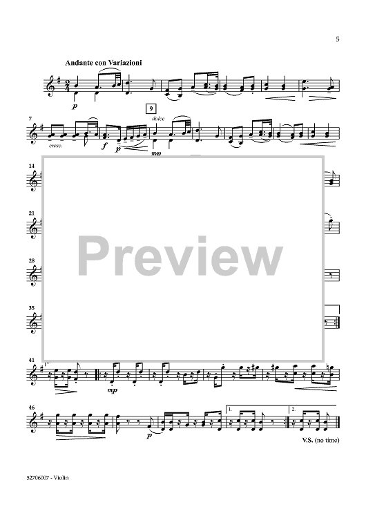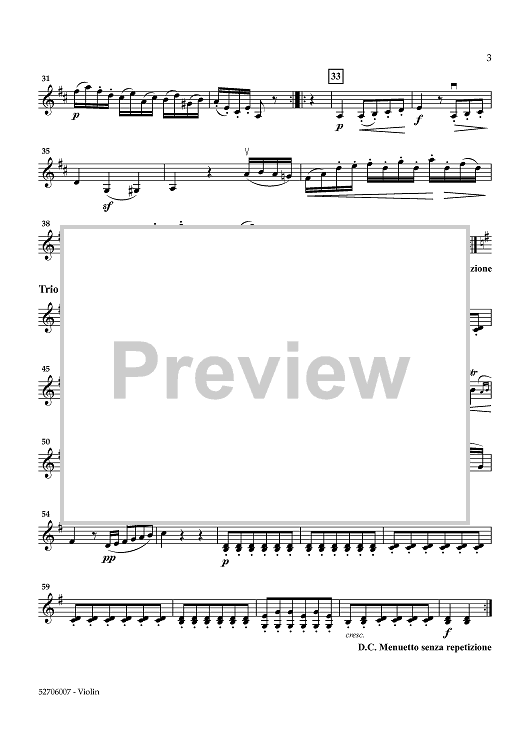 "Serenade, Op. 25 for Flute, violin and viola - Violin" Sheet Music by Ludwig van Beethoven