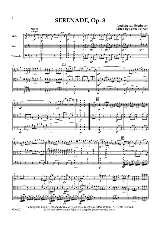 Digital Sheet Music for Serenade, Op. 8 for String Trio - Score by , Ludwig van Beethoven, Lynne Latham scored for String Trio; id:462565