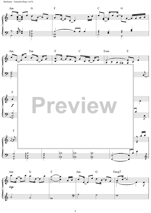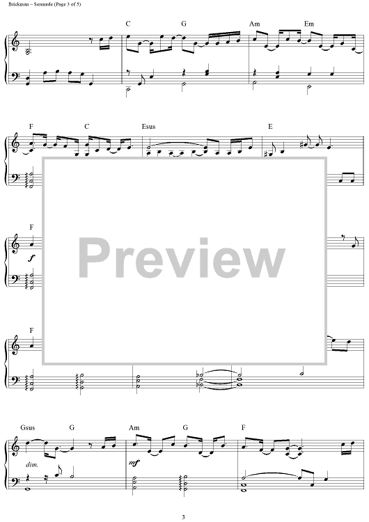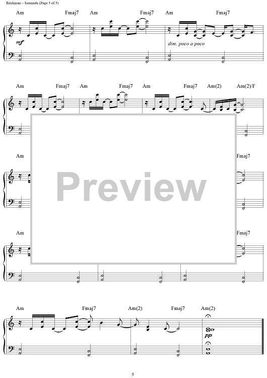 Digital Sheet Music for Serenade by Jim Brickman scored for Piano Solo; id:284508