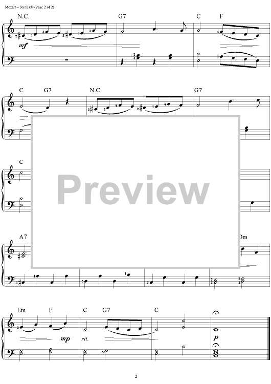 Digital Sheet Music for Serenade by Wolfgang Amadeus Mozart, Richard Bradley scored for Easy Piano; id:292453