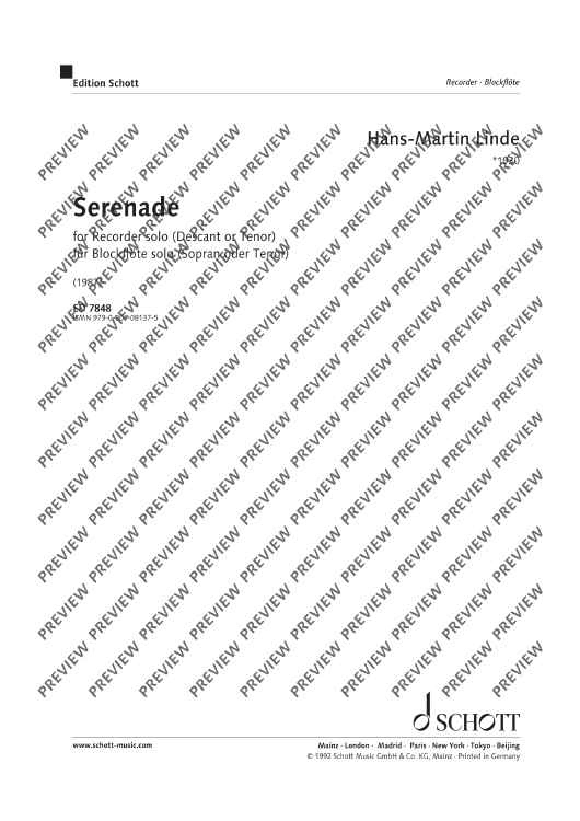 Digital Sheet Music for Sérénade by Hans-Martin Linde scored for Soprano- Or Tenor Recorder; id:501162