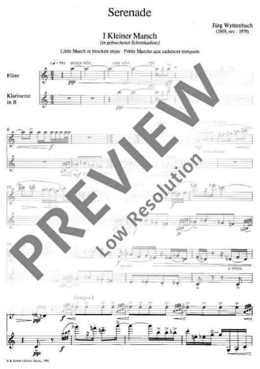 Digital Sheet Music for Sérénade - Performing Score by Juerg Wyttenbach scored for Flute And Clarinet; id:482739