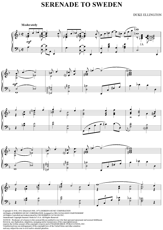 Digital Sheet Music for Serenade to Sweden by Duke Ellington scored for Piano Solo; id:124141
