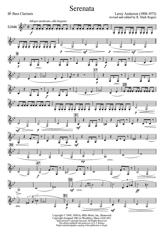 "Serenata - Bb Bass Clarinet" Sheet Music by Leroy Anderson