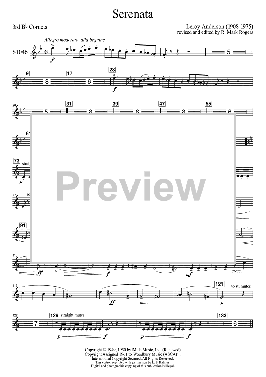 Digital Sheet Music for Serenata - Bb Cornet 3 by Leroy Anderson scored for Concert Band; id:502292