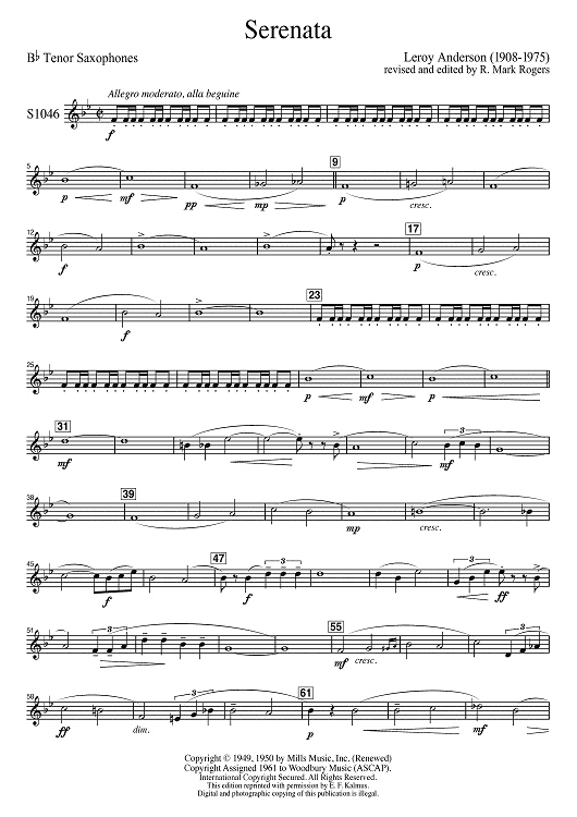"Serenata - Bb Tenor Sax" Sheet Music by Leroy Anderson
