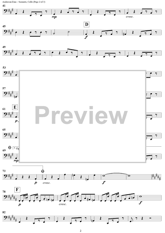 Digital Sheet Music for Serenata - Cello by Leroy Anderson, William Zinn scored for String Ensemble; id:434259