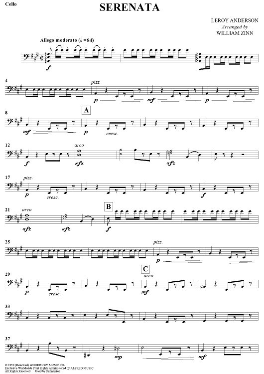 "Serenata - Cello" Sheet Music by Leroy Anderson