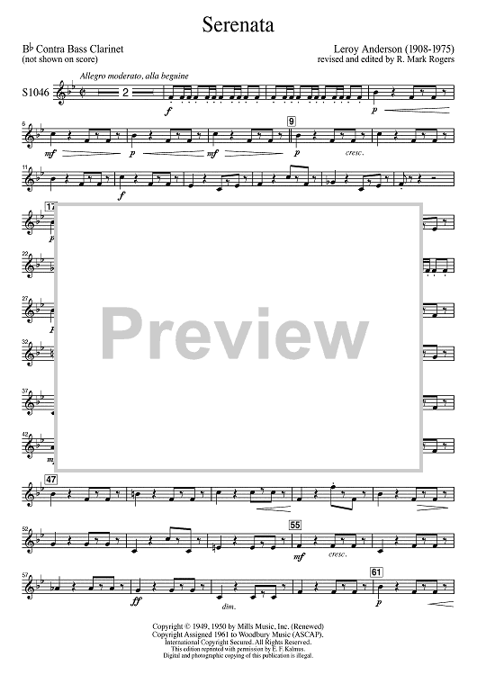 Digital Sheet Music for Serenata - Eb Contra Alto Clarinet / Bb Contra Bass Clarinet by Leroy Anderson scored for Concert Band; id:502283
