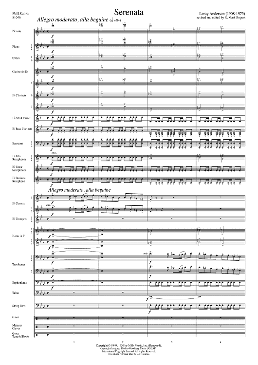 Digital Sheet Music for Serenata - Full Score by Leroy Anderson scored for Concert Band; id:502271