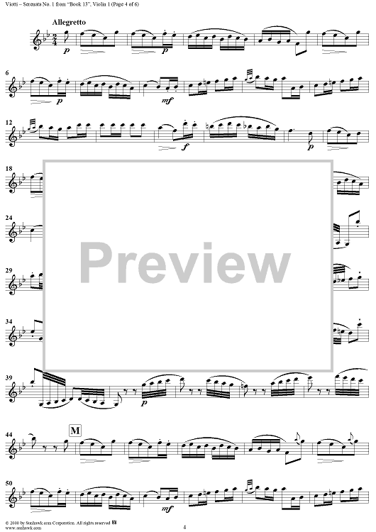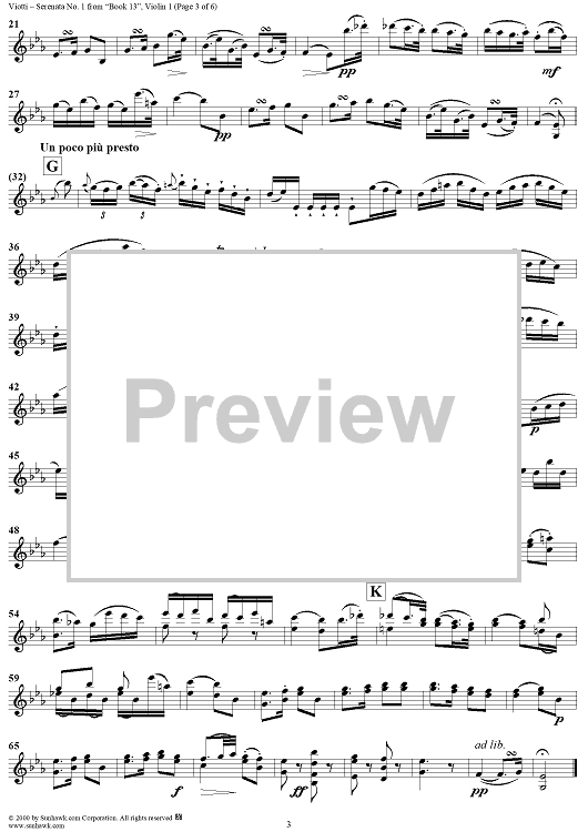 Digital Sheet Music for Serenata No. 1 in E-flat Major - Violin 1 by Giovanni Battista Viotti scored for Two Violins; id:264798