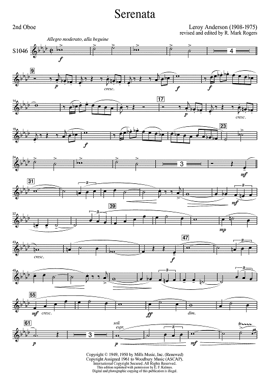 "Serenata - Oboe 2" Sheet Music by Leroy Anderson