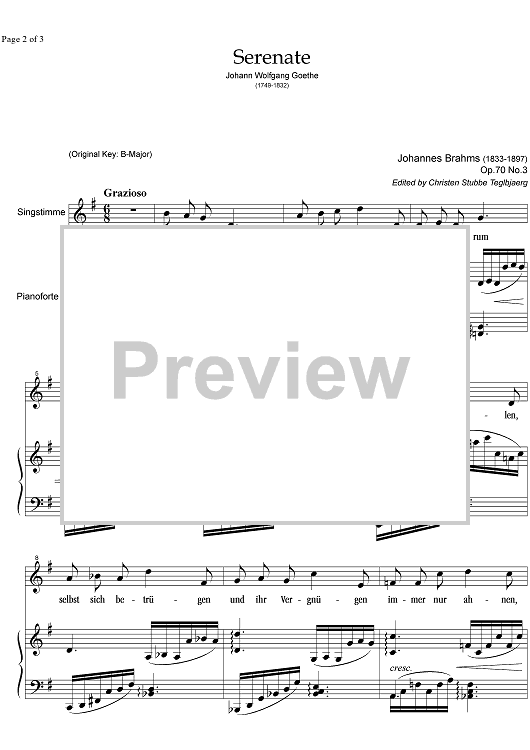 Digital Sheet Music for Serenate Op.70 No. 3 by , Johannes Brahms scored for Alto or Bass/Piano; id:336055