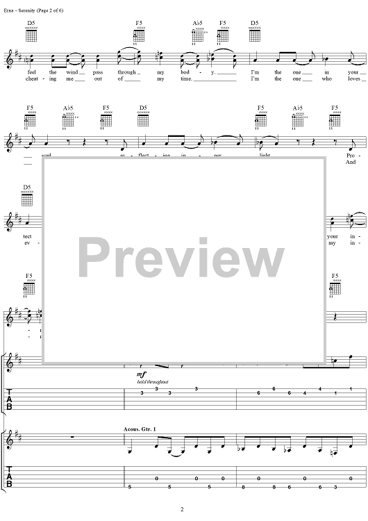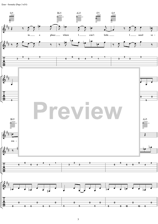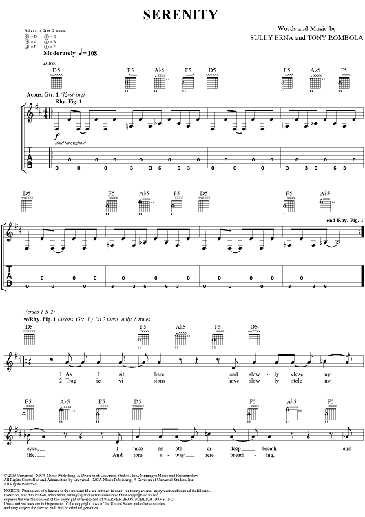 Digital Sheet Music for Serenity by Godsmack, Tony Rombola scored for Guitar Tab/Vocal; id:297709