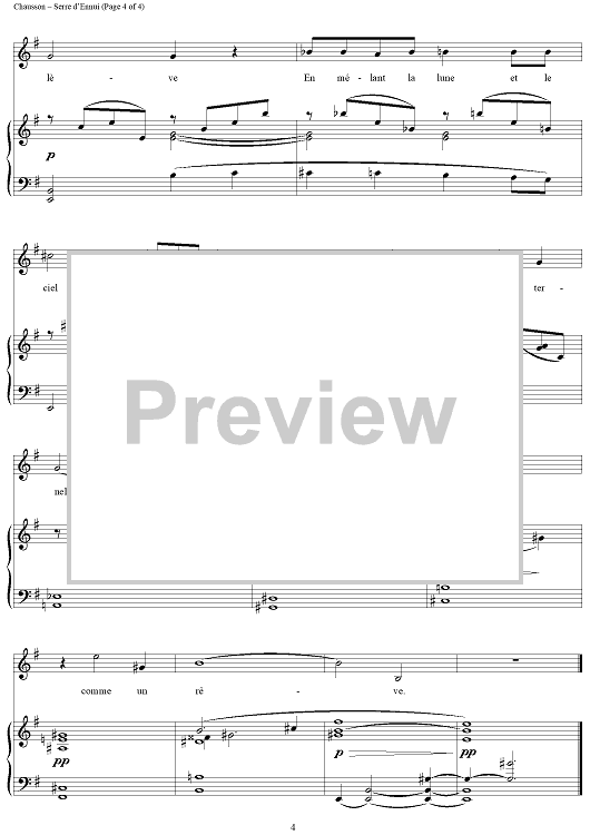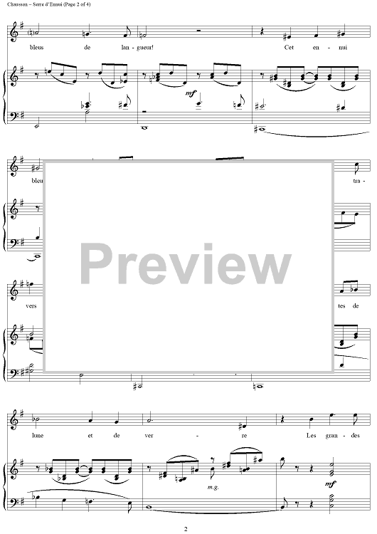 Digital Sheet Music for Serre Chasudes - Serre D'Ennui by Ernest Chausson, Maurice Maeterlinck scored for Piano/Vocal; id:444406
