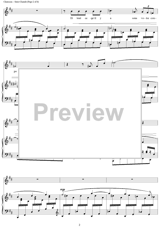 Digital Sheet Music for Serres Chaudes - Serres Chaude by Ernest Chausson, Maurice Maeterlinck scored for Piano/Vocal; id:444453