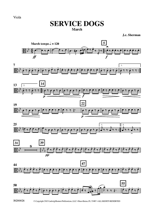 Digital Sheet Music for Service Dogs (March) - Viola by J. C. Sherman scored for Full Orchestra; id:459609