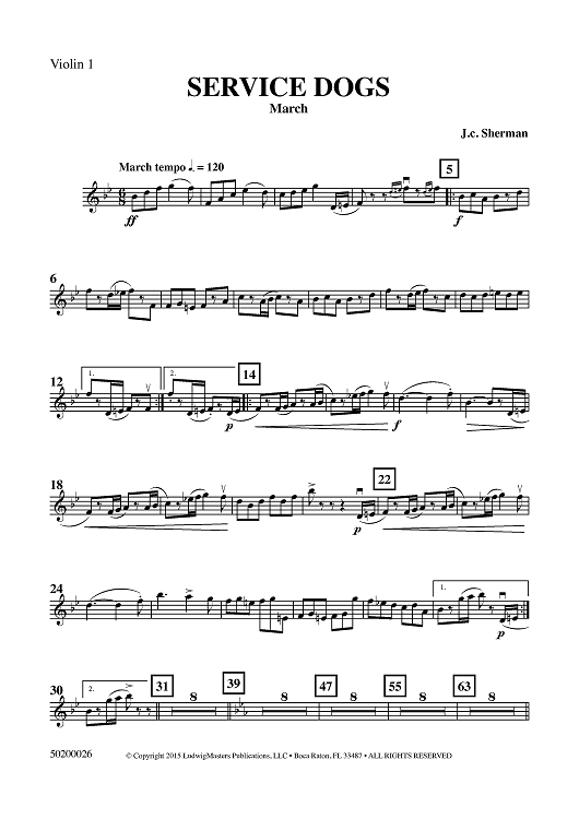 "Service Dogs (March) - Violin 1" Sheet Music by J. C. Sherman