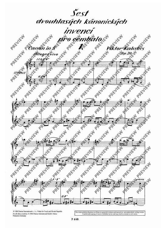 Digital Sheet Music for Sest dvouhlasých kánonických invencí by Viktor Kalabis scored for Harpsichord; id:501125