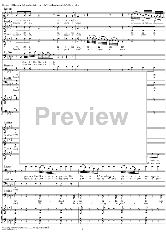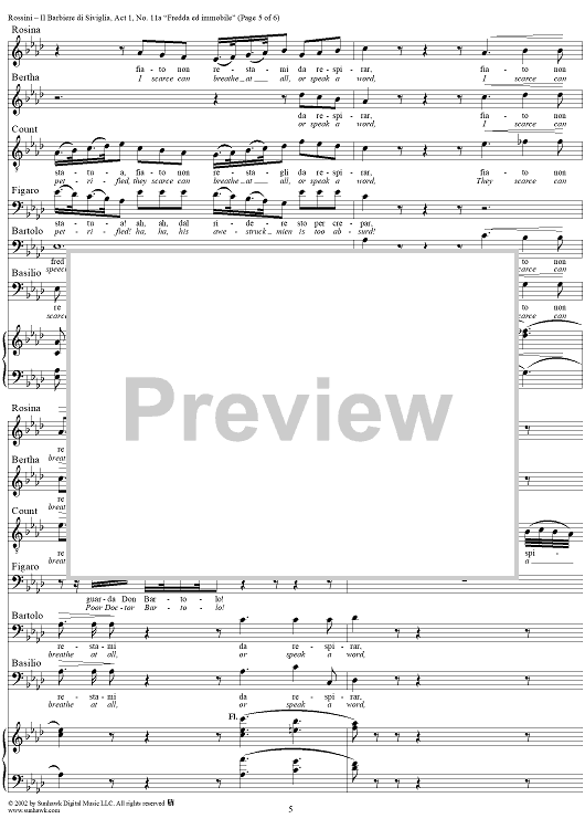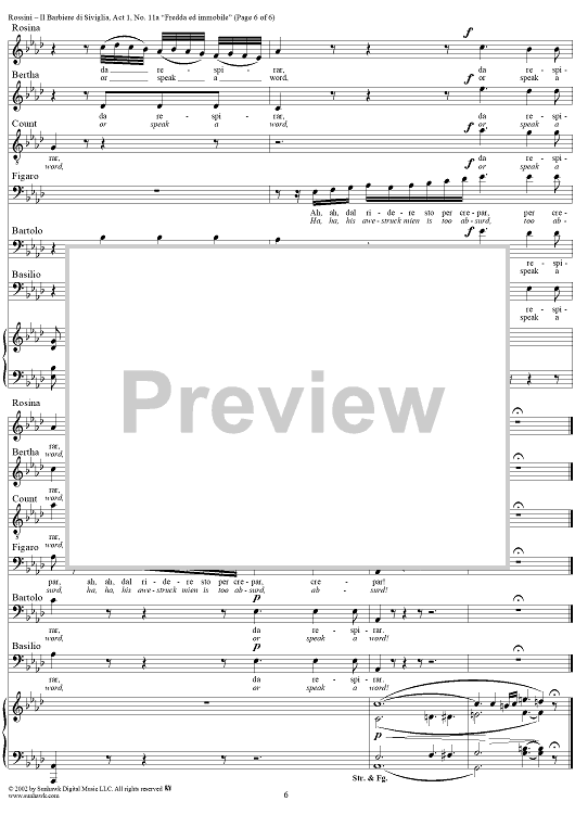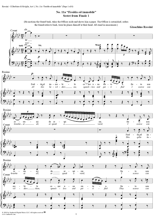 Digital Sheet Music for Sestet from Finale 1: Fredda ed immobile, No. 11a from "Il Barbiere di Siviglia" by Gioachino Rossini, Cesare Sterbini scored for Voice/Piano; id:290622