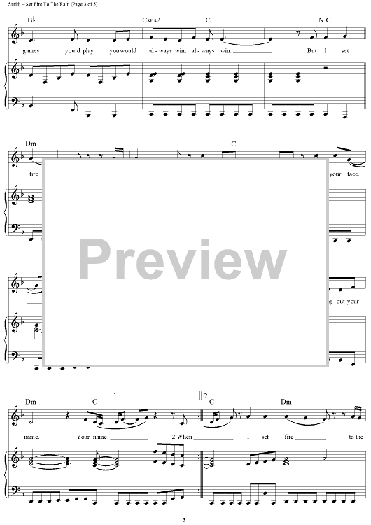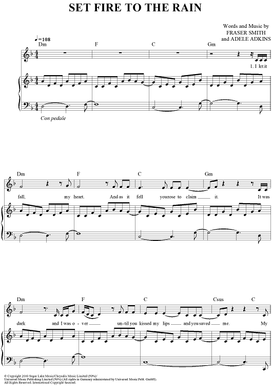 Digital Sheet Music for Set Fire To The Rain by Adele Adkins, Adele, Fraser T. Smith scored for Piano/Vocal/Chords; id:418656
