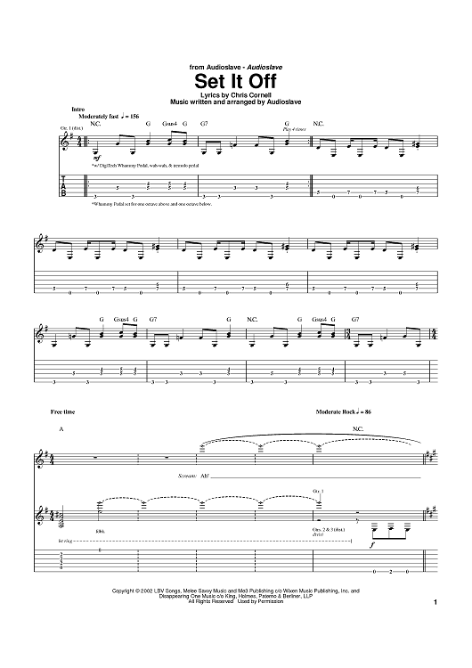 Digital Sheet Music for Set It Off by Audioslave, Chris Cornell scored for Guitar Tab; id:372419