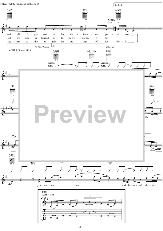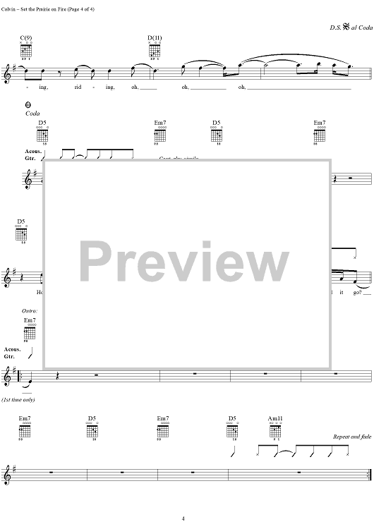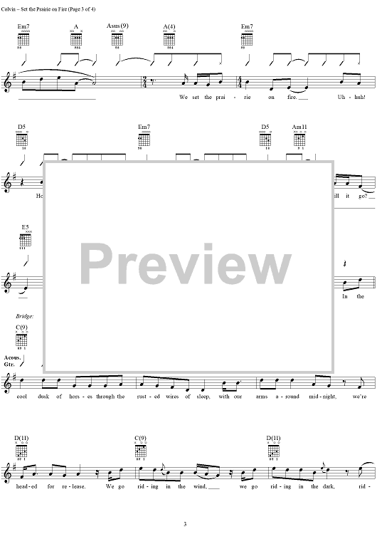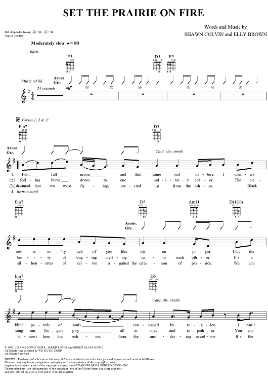 "Set the Prairie on Fire" Sheet Music by Shawn Colvin