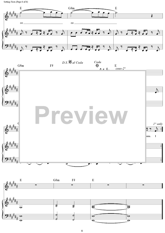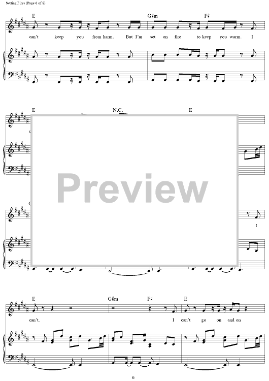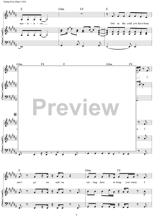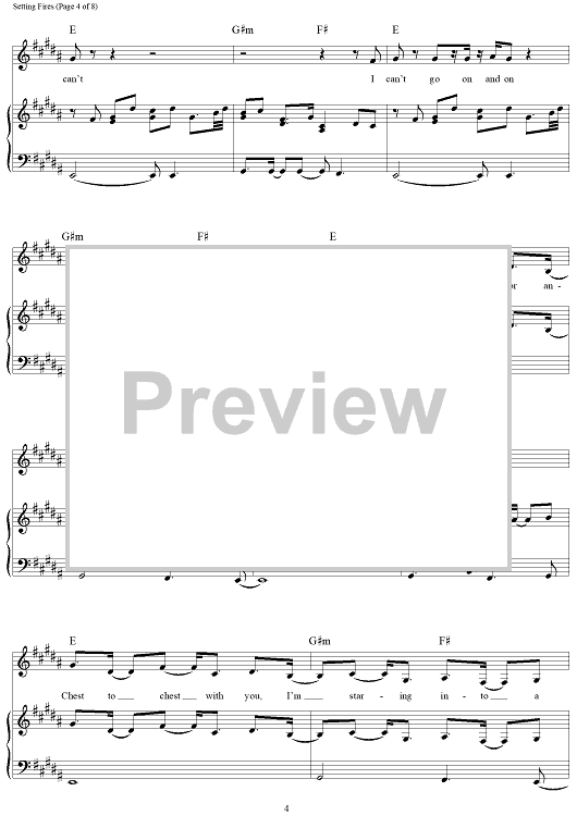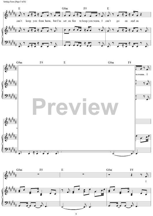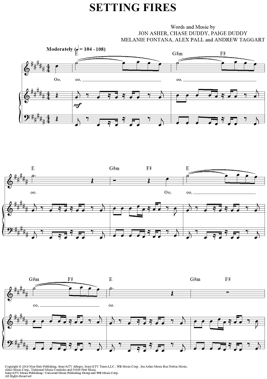 Digital Sheet Music for Setting Fires by Melanie Fontana, Andrew Taggart, The Chainsmokers, Alex Pall, Jon Asher, Chase Duddy, Paige Duddy scored for Piano/Vocal/Chords; id:463012