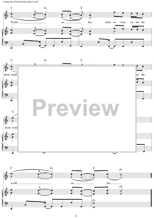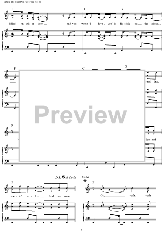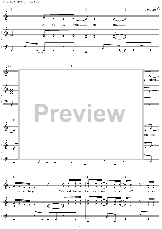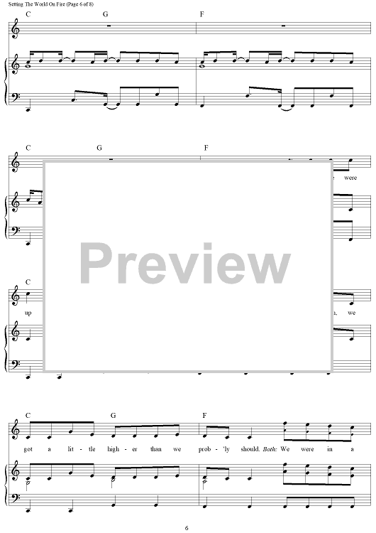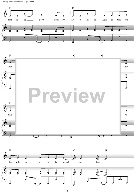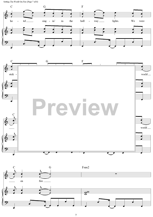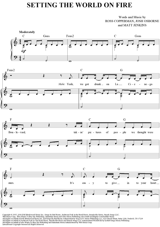 Digital Sheet Music for Setting The World On Fire by Kenny Chesney, Matt Jenkins, Josh Osborne, Ross Copperman scored for Piano/Vocal/Chords; id:461111
