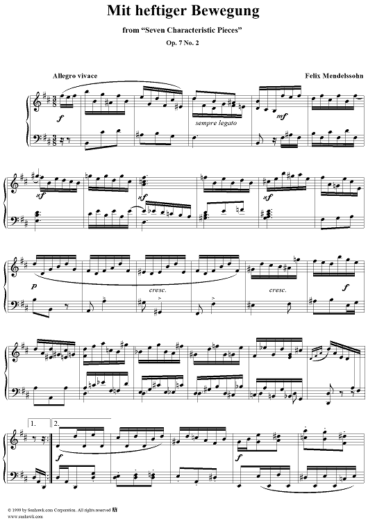 Digital Sheet Music for Seven Characteristic Pieces (Sieben Charakterstücke), Op. 7 - 2. Mit heftiger Bewegung (B Minor) by Felix Mendelssohn scored for Piano Solo; id:251877