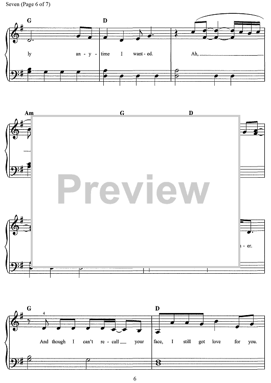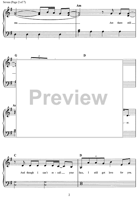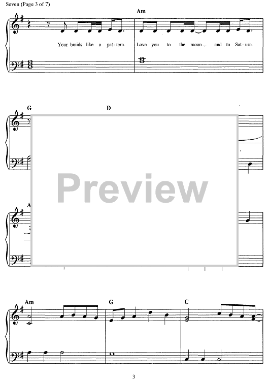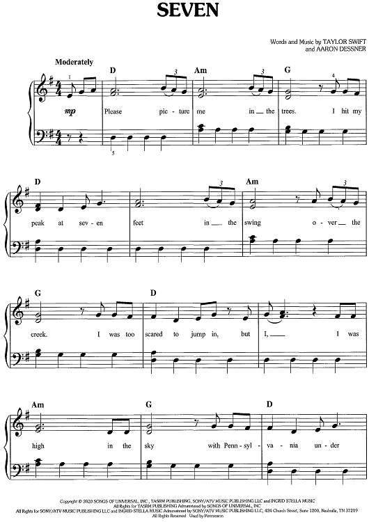 Digital Sheet Music for Seven by Taylor Swift, Aaron Dessner scored for Easy Piano/Vocal/Chords; id:468660