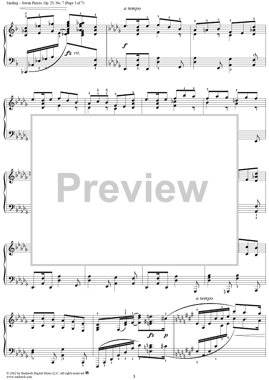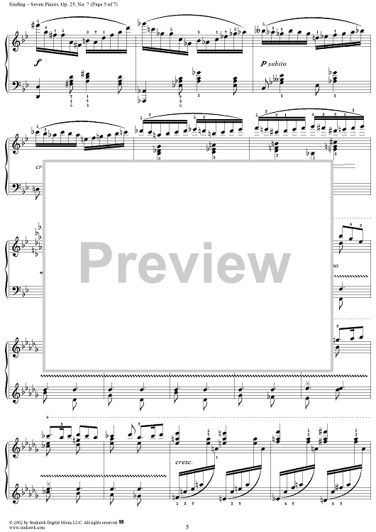 Digital Sheet Music for Seven Pieces, Op. 25 Heft II, No.7 by Christian Sinding scored for Piano Solo; id:255897
