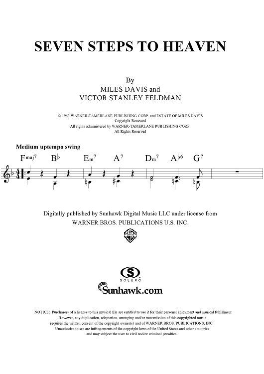 Digital Sheet Music for Seven Steps to Heaven by Miles Davis, Victor Feldman scored for Lead Sheet; id:272900