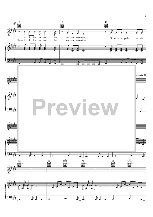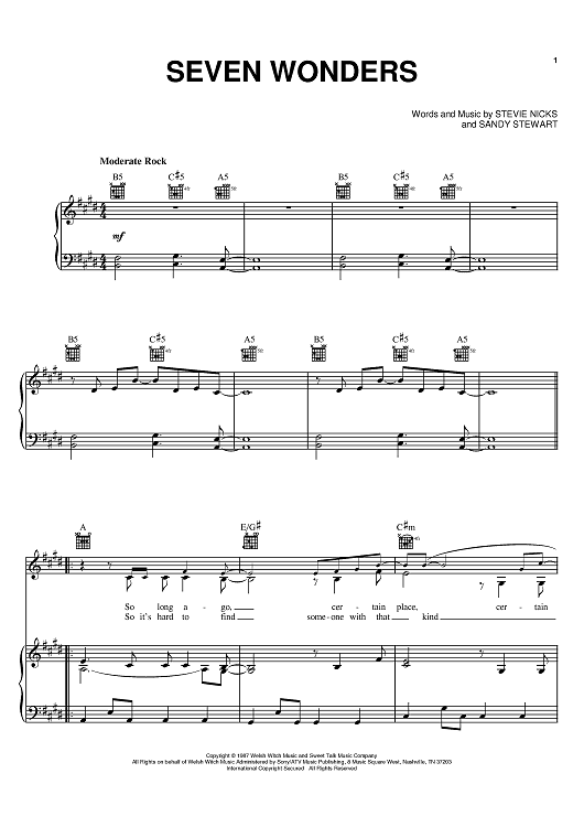 Digital Sheet Music for Seven Wonders by Stevie Nicks, Fleetwood Mac, Sandy Stewart scored for Piano/Vocal/Chords; id:379332