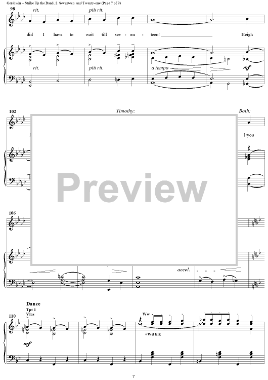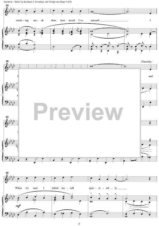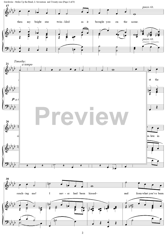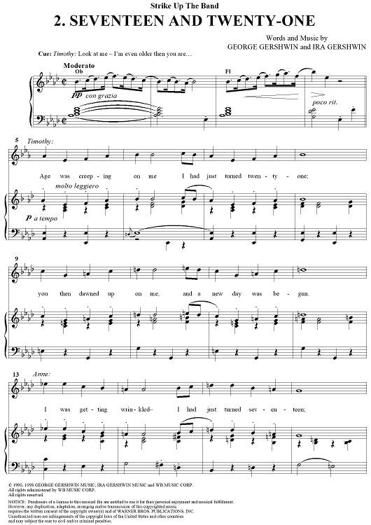 Digital Sheet Music for Seventeen and Twenty-One by George Gershwin, Ira Gershwin scored for Piano/Vocal/Chords; id:201367